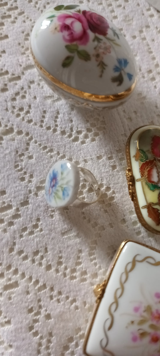 Bague ajustable fabriquée avec assiette ancienne en porcelaine de chine