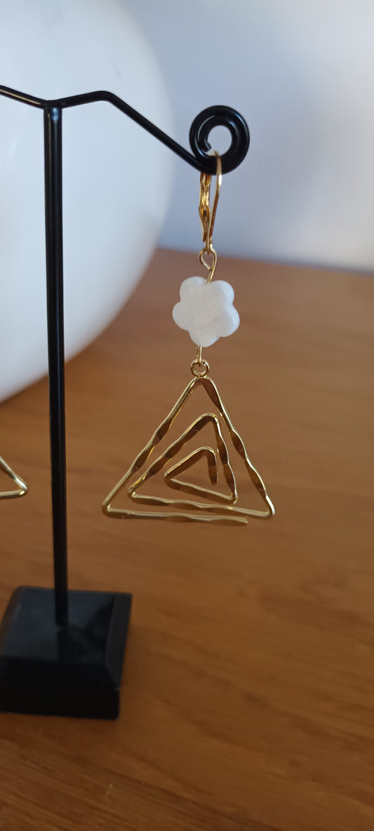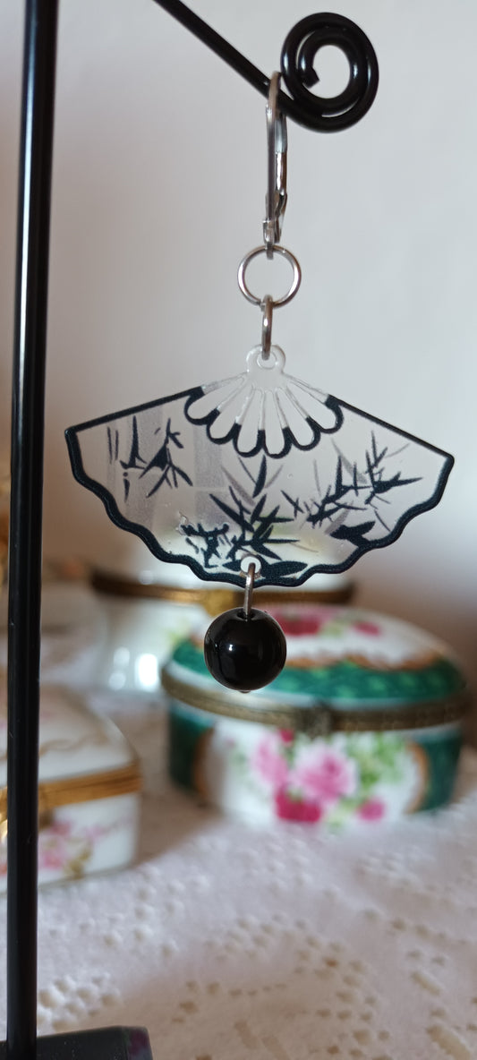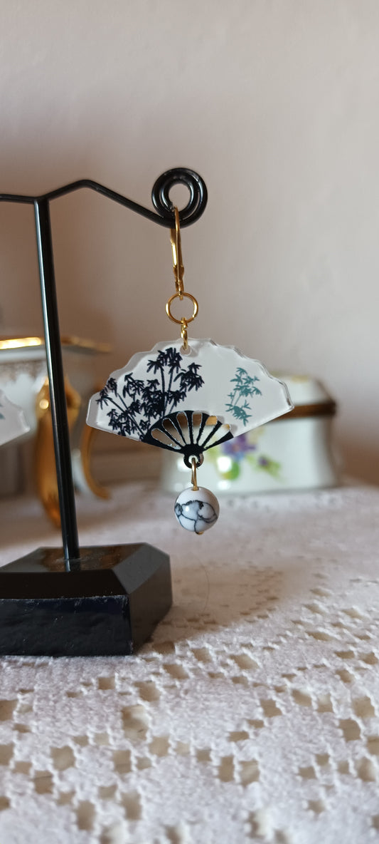 Boucles d'oreilles en acrylique de forme éventail blanc