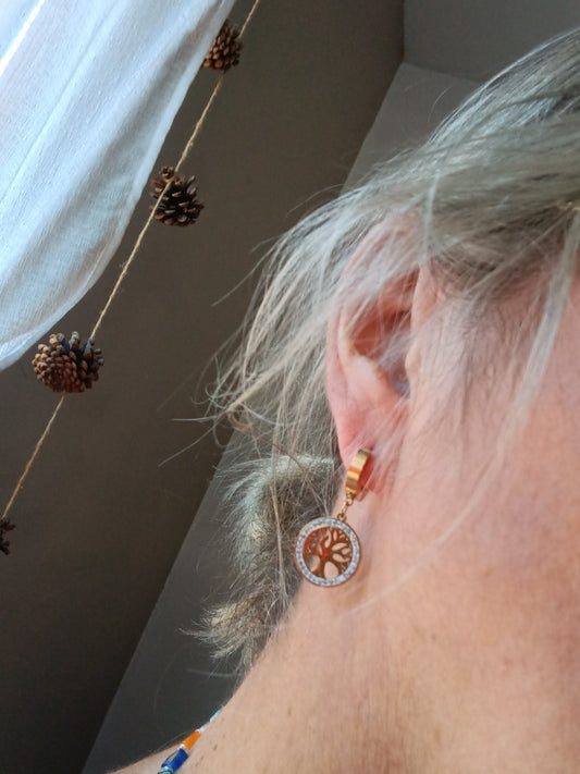 Boucles d'oreilles arbre de vie en acier inoxydable doré