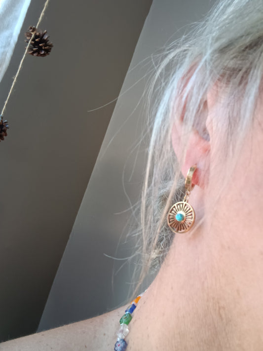 Boucles d'oreilles en acier inoxydable avec pendentifs turquoise