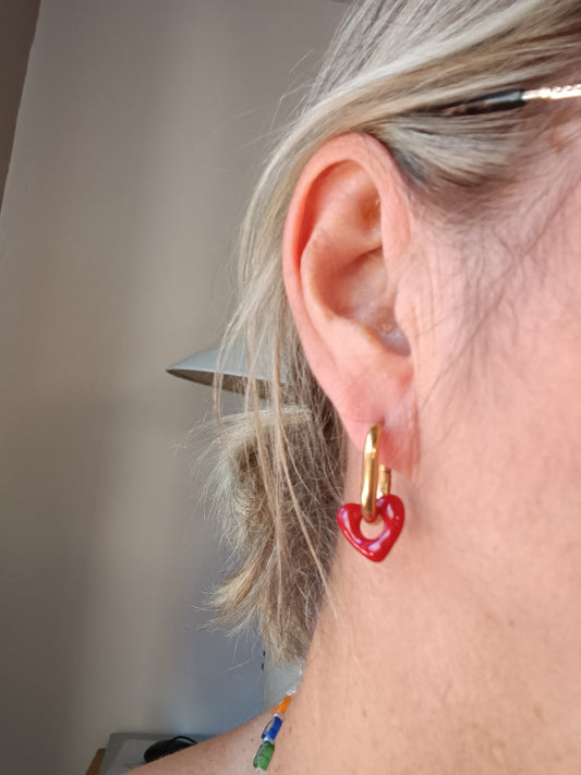 Boucles d'oreilles a pendantes en forme de cœur rouge