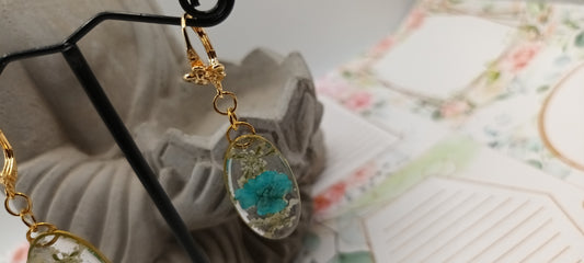 Boucles d'oreilles en résine inclusion de petites fleurs séchées véritables