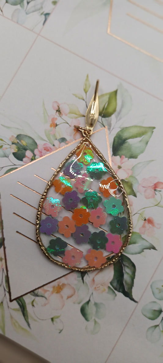 Boucles d'oreilles pendantes En Résine avec inclusion de Sequins