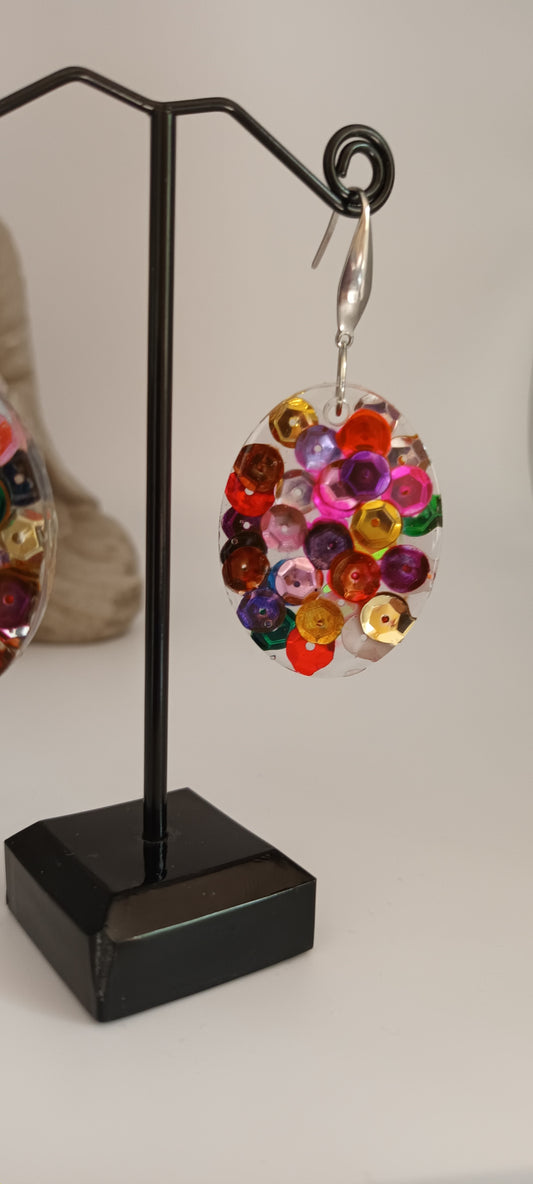 Boucles d'oreilles en résine inclusion de sequins multicolore