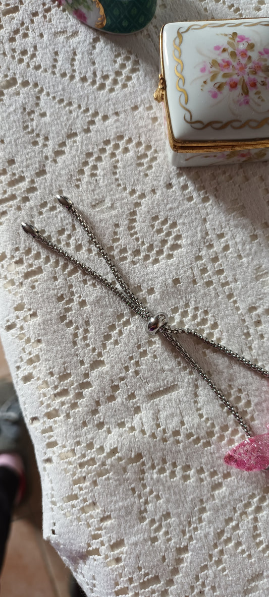 bracelet en résine forme papillon rose et paillettes