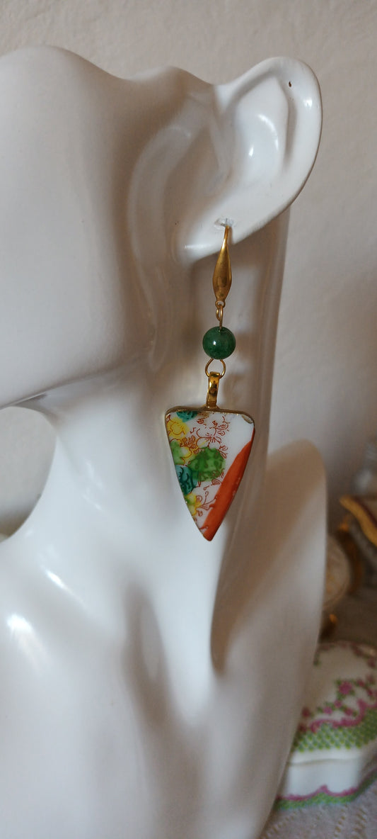 boucles d'oreilles fabriquer avec une assiette à thé en porcelaine de chine