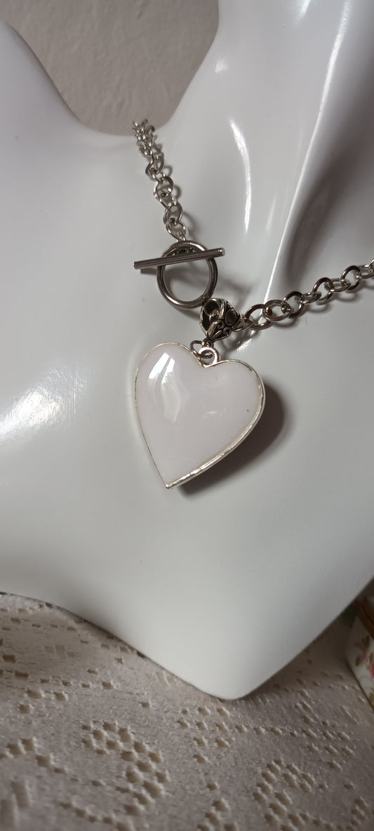 collier en forme de cœur en résine avec inclusion de roses pressées