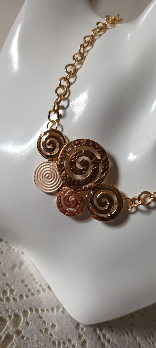 ensemble boucles d'oreilles et collier en forme géométrique ronde marron et doré (Copie)