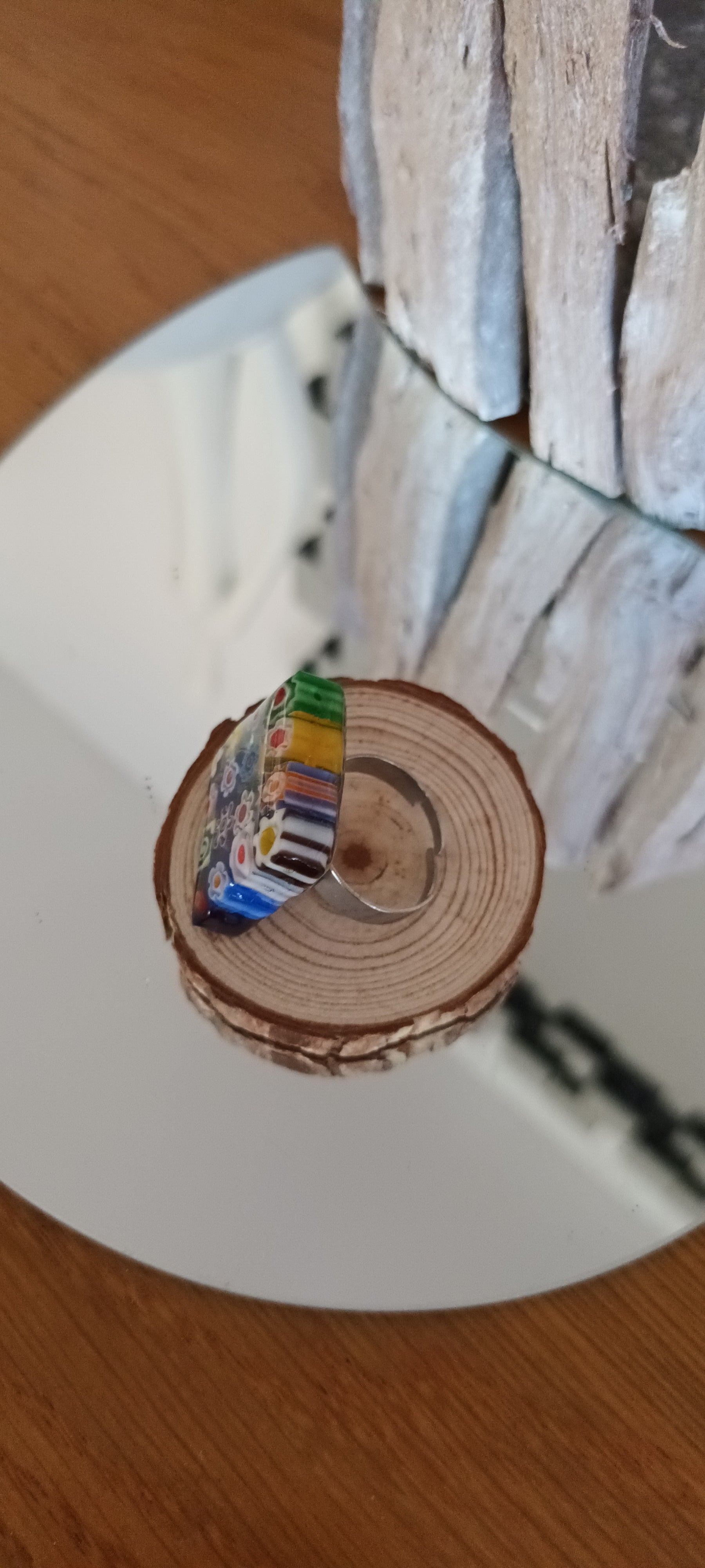 Bague en résine avec verre soufflé Murano, pour accompagner vos tenues du quotidien ,où a porter selon vos envies